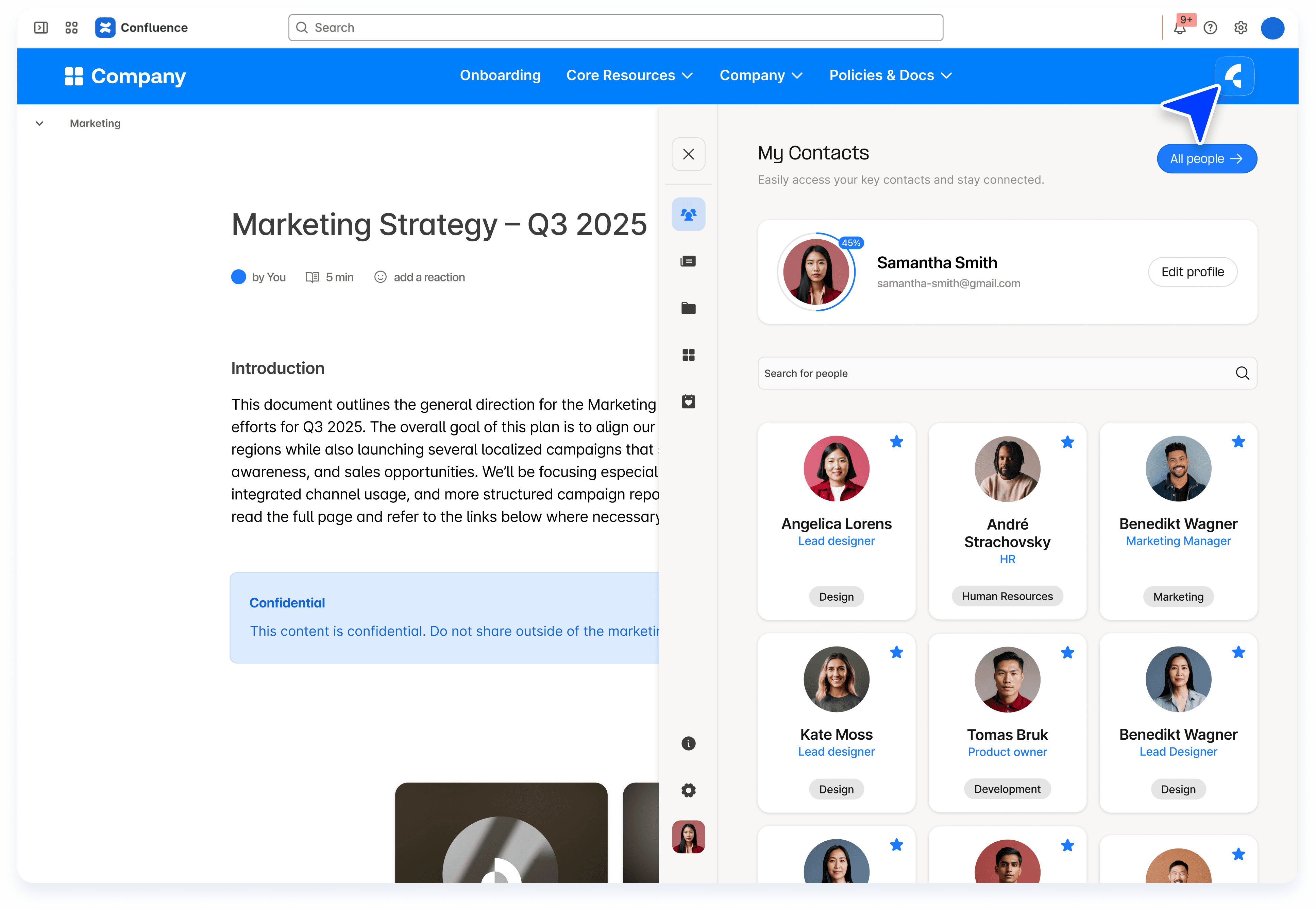 Cosmos adds a global navigation bar and personalized side drawer to every page in Confluence. Find what matters quickly with instant access to updates, tools, and team spaces without switching tabs or losing context.