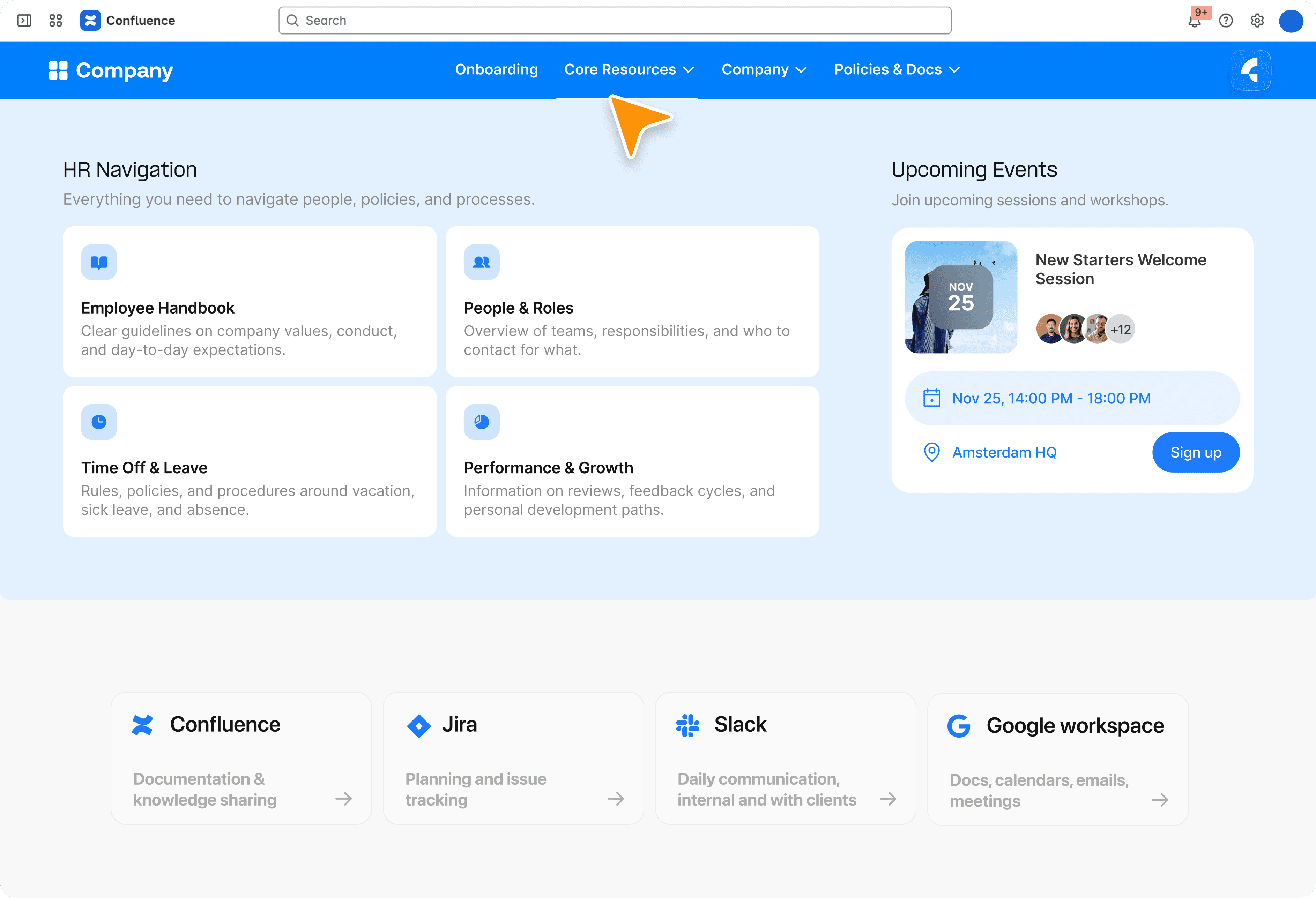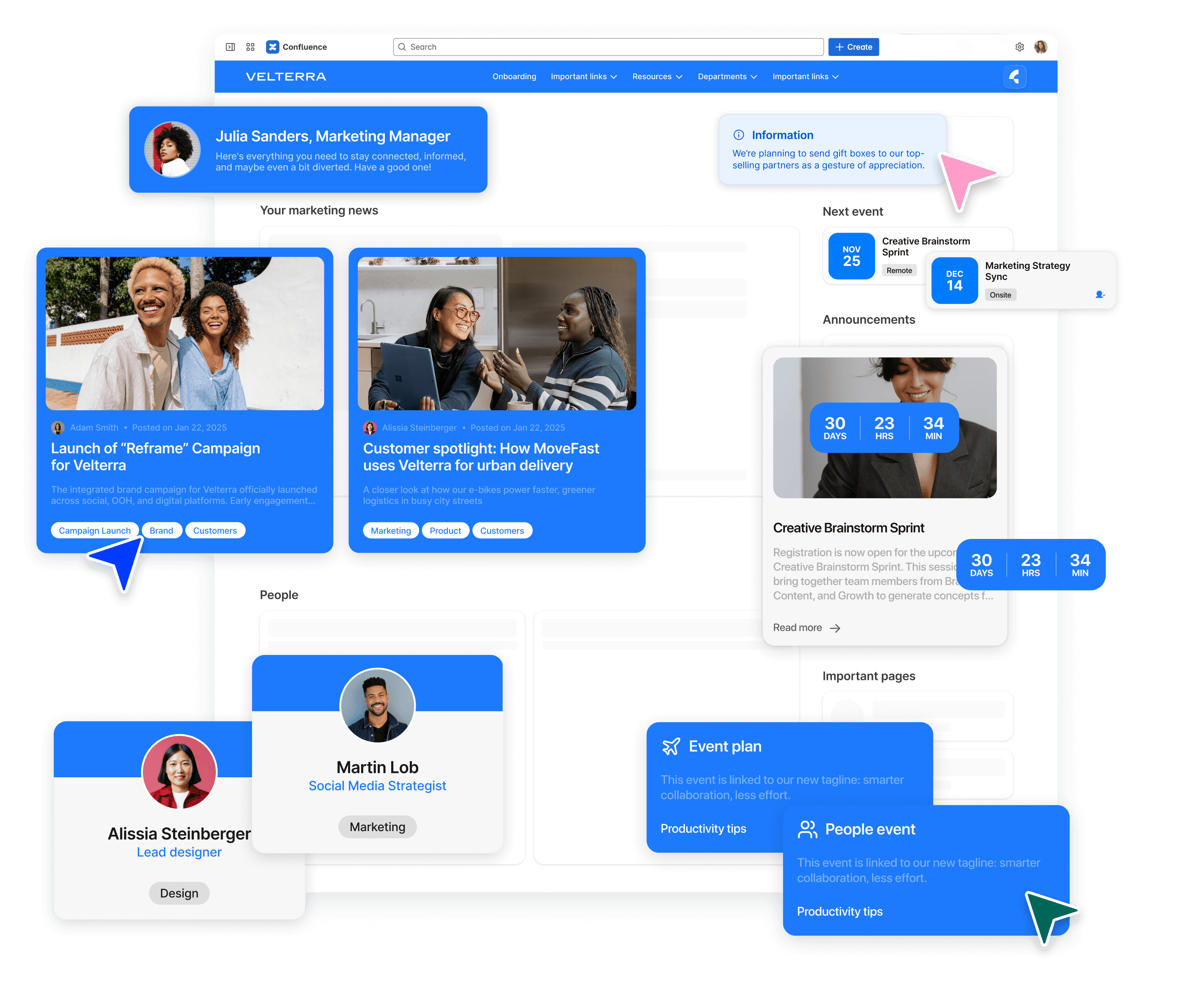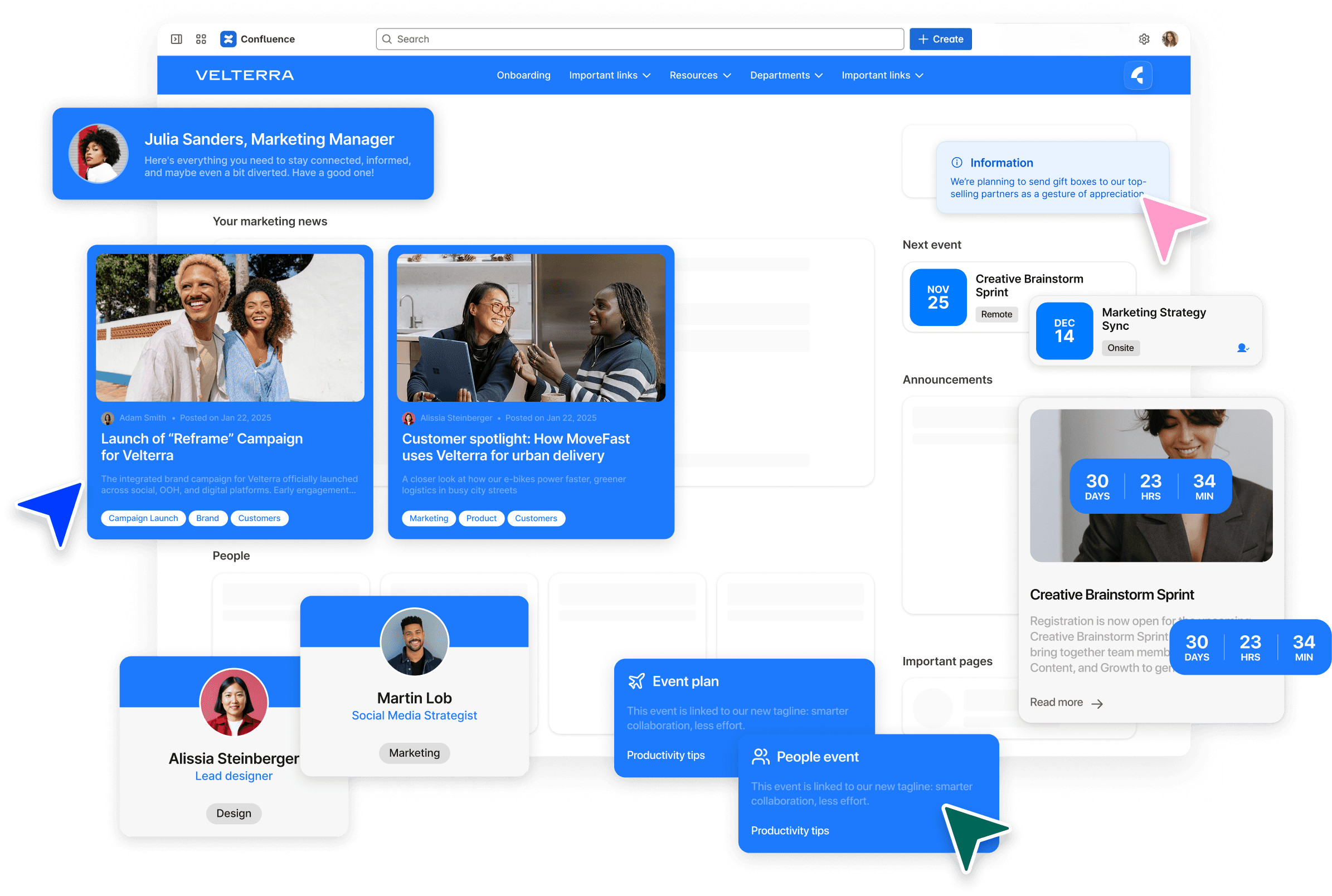 Cosmos turns your Confluence into a structured, branded, and personalized intranet that brings clarity, connection, and identity to your digital workplace. It becomes the home your teams recognize and trust, built to keep everyone informed, aligned, and focused without distraction.